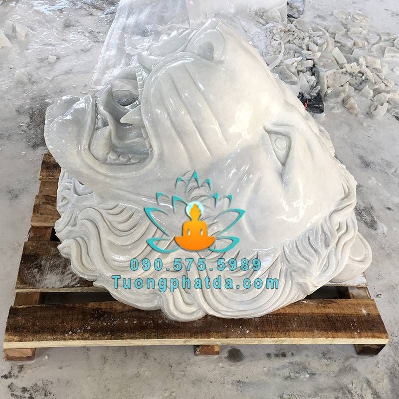 Đầu sư tử đá trắng nguyên khối phun nước