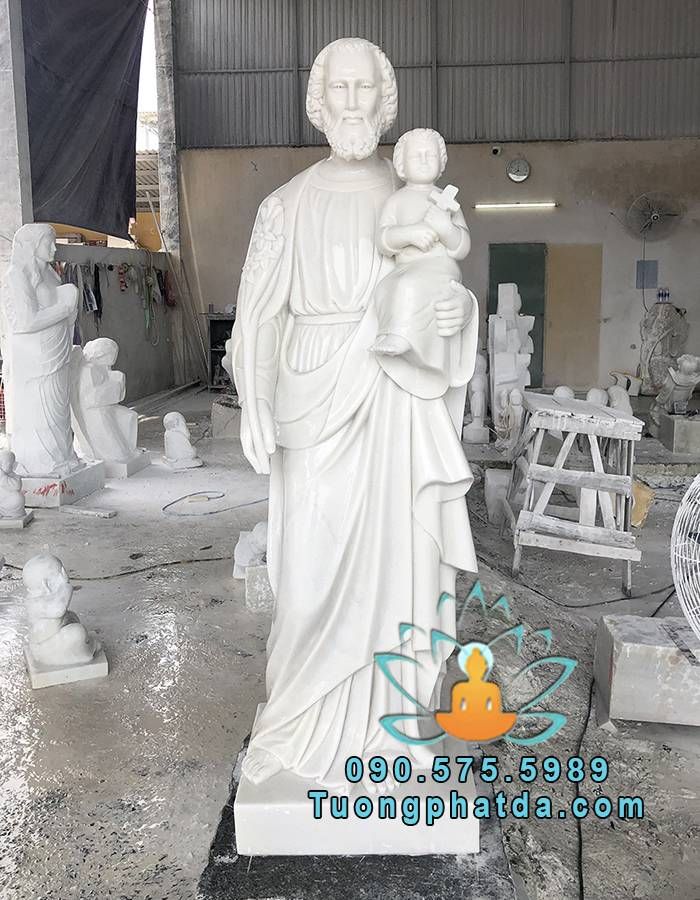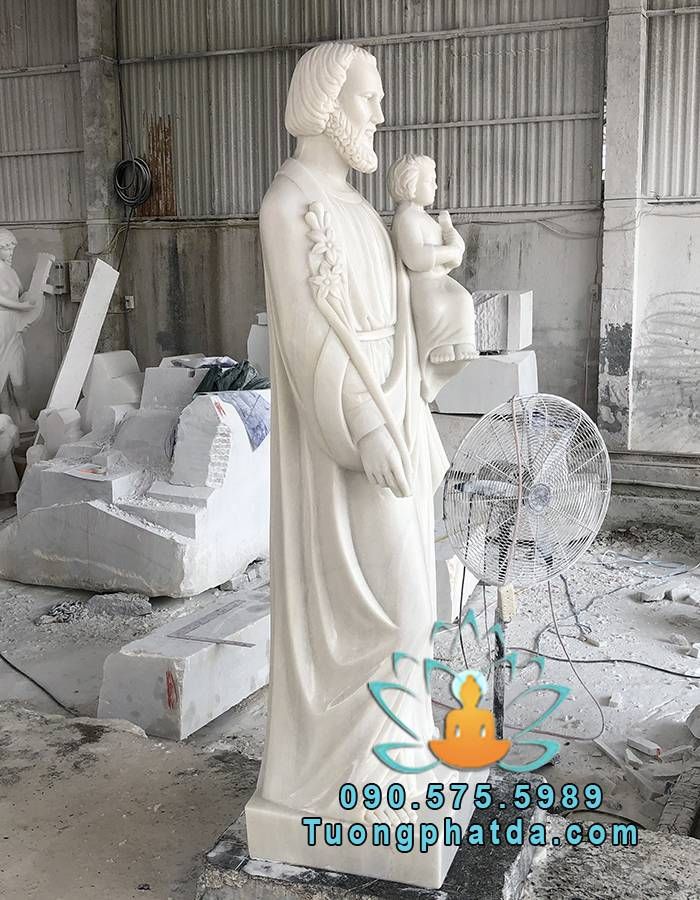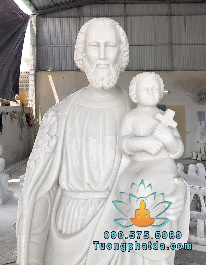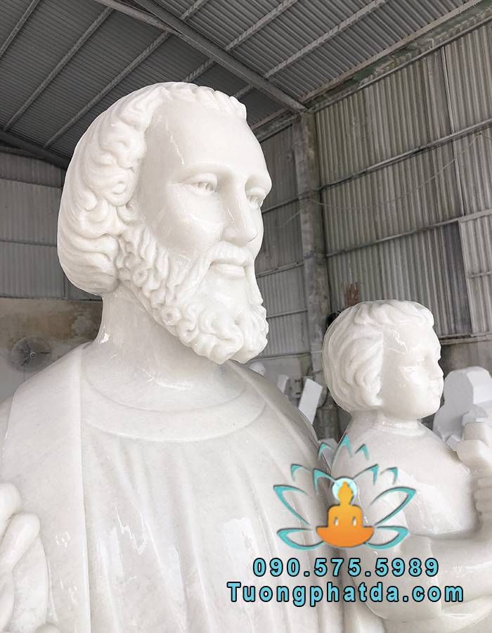 Tượng Thánh Giuse Cùng Chúa Giesu Bằng Đá Trắng Đẹp