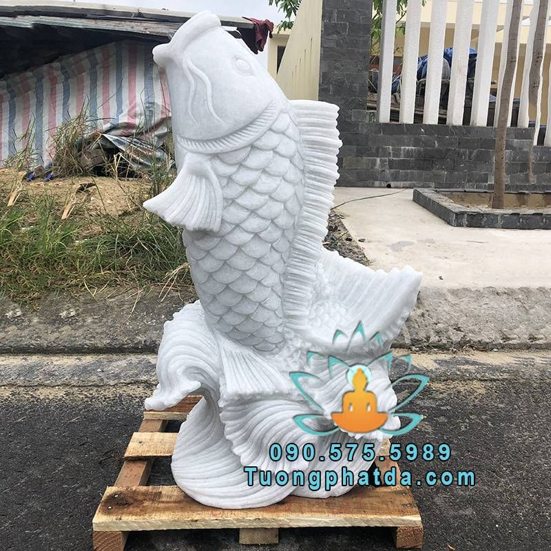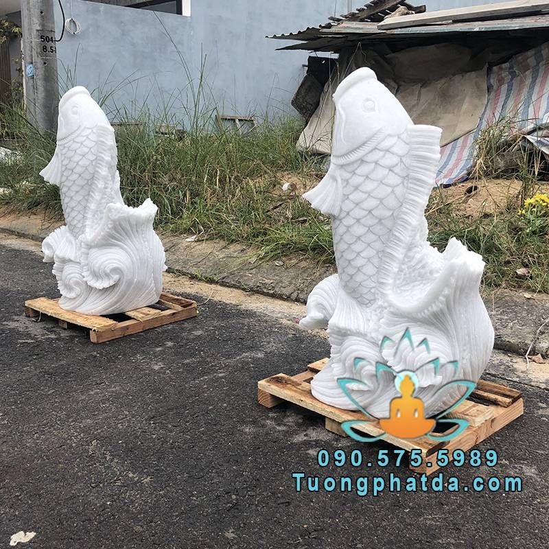 - Mẫu tượng cá chép phun nước đá cẩm thạch trắng đẹp , kích thước cao 60cm một tượng. Được chế tác từ chất liệu đá cẩm thạch nguyên khối 100%. Hệ thống nước được khoan âm trong tượng cá. Tùy biến vị trí cấp nước theo mọi nhu cầu của khách hàng.