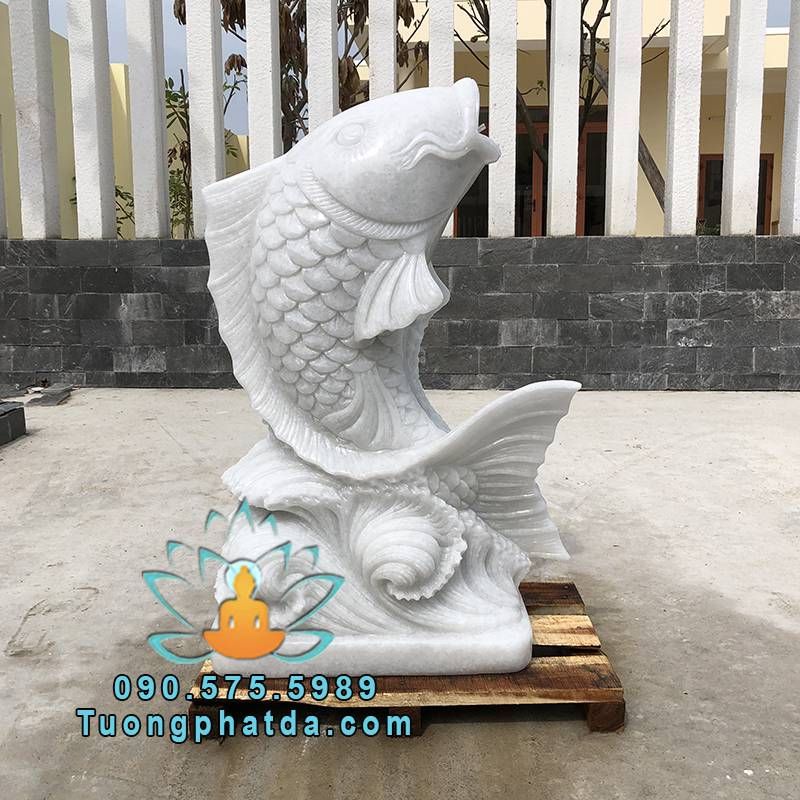 - Mẫu tượng cá chép phun nước đá cẩm thạch trắng đẹp , kích thước cao 60cm một tượng. Được chế tác từ chất liệu đá cẩm thạch nguyên khối 100%. Hệ thống nước được khoan âm trong tượng cá. Tùy biến vị trí cấp nước theo mọi nhu cầu của khách hàng.