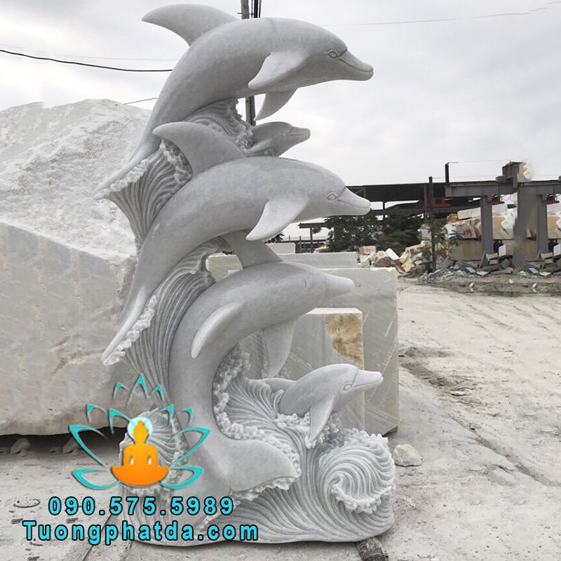 - Mẫu tượng cá heo 5 con phun nước đá cẩm thạch đẹp, kích thước cao 2.5m một tượng. Được chế tác từ chất liệu đá cẩm thạch trắng nguyên khối 100%. Hệ thống nước được khoan âm trong tượng cá. Tùy biến vị trí cấp nước theo mọi nhu cầu của khách hàng.